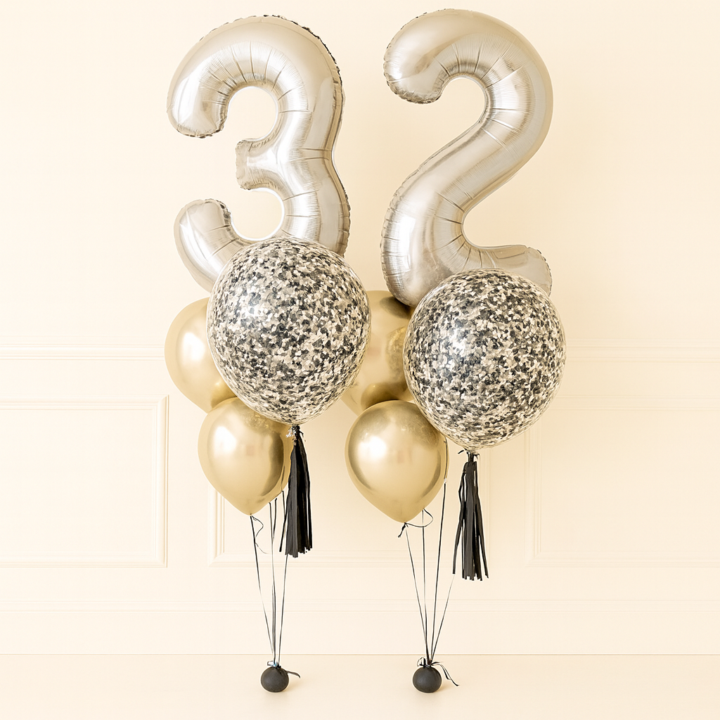 40"-INCH HELIUM-INFLATED BALLOON NUMBERS tied on ribbon.