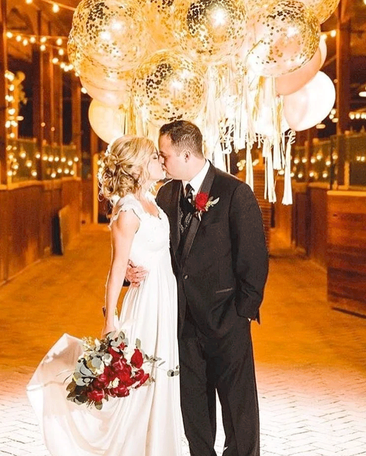 Elevate your space with dreamy ceiling balloons styled with long curling ribbon for easy setup.