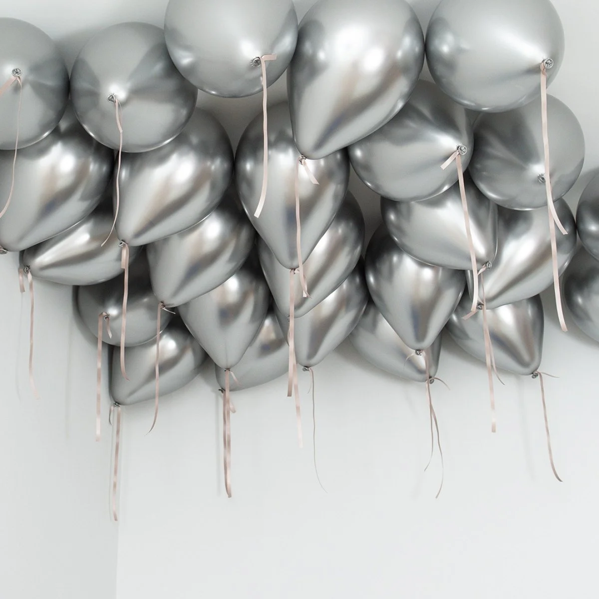 CEILING BALLOONS – 11"/SMALL BIODEGRADABLE LATEX Elevate your space with dreamy ceiling balloons styled with long curling ribbon for easy setup.